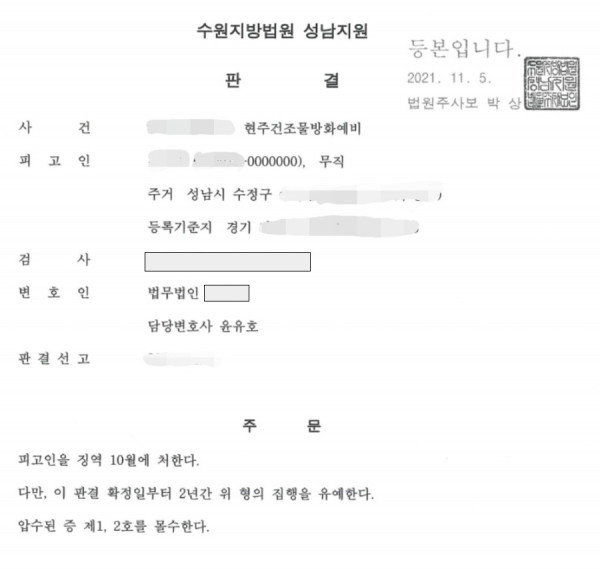 페이지 정보 법무법인로블 작성일23-07-04 목록 본문 현주건조물방화죄는 법정형이 높습니다. 그리하여 바로 구속이 되었으나...변호인을 선임하여 적절한 양형변호를 받고 1심에서 집행유예를 선고받은 후 석방되었습니다.